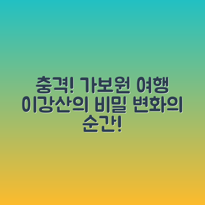 여행 일정에 지장을 주지 않도록 교통 상황과 날씨를 미리 체크하세요. 특히, 가보원이강산의 위치에 따라 이동 방법을 사전에 계획하면 원활한 여행을 도모할 수 있습니다.